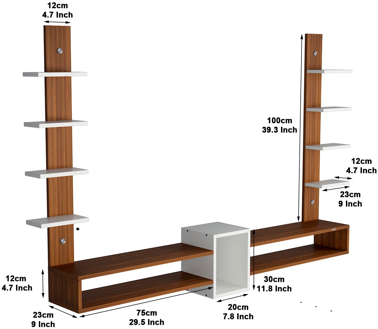 Material- 17mm Pre-laminated particle baord. Weight Capacity- 25 KG. Cable Management. Product Dimension- TV Cabinet- 170 x 23 x 13.4 CM, Wall Shelf- 23 x 12 CM, Shelf supporting Unit- 100 x 12 CM, Thickness Of Board- 17 MM, Weight- 18 KG
