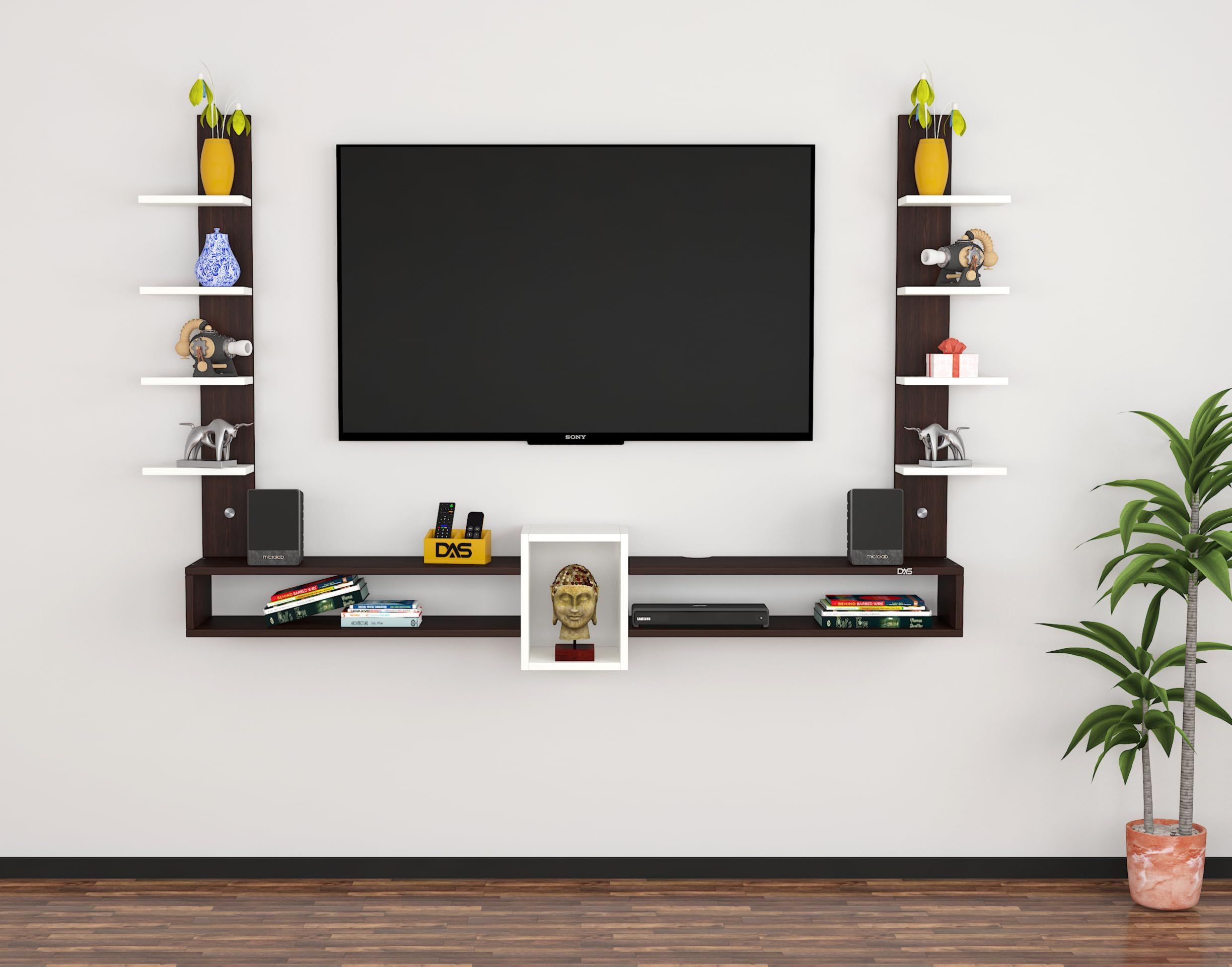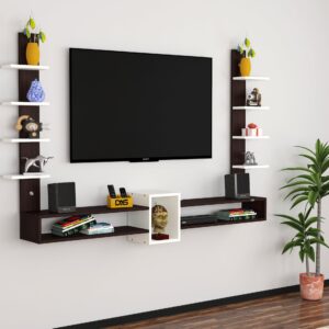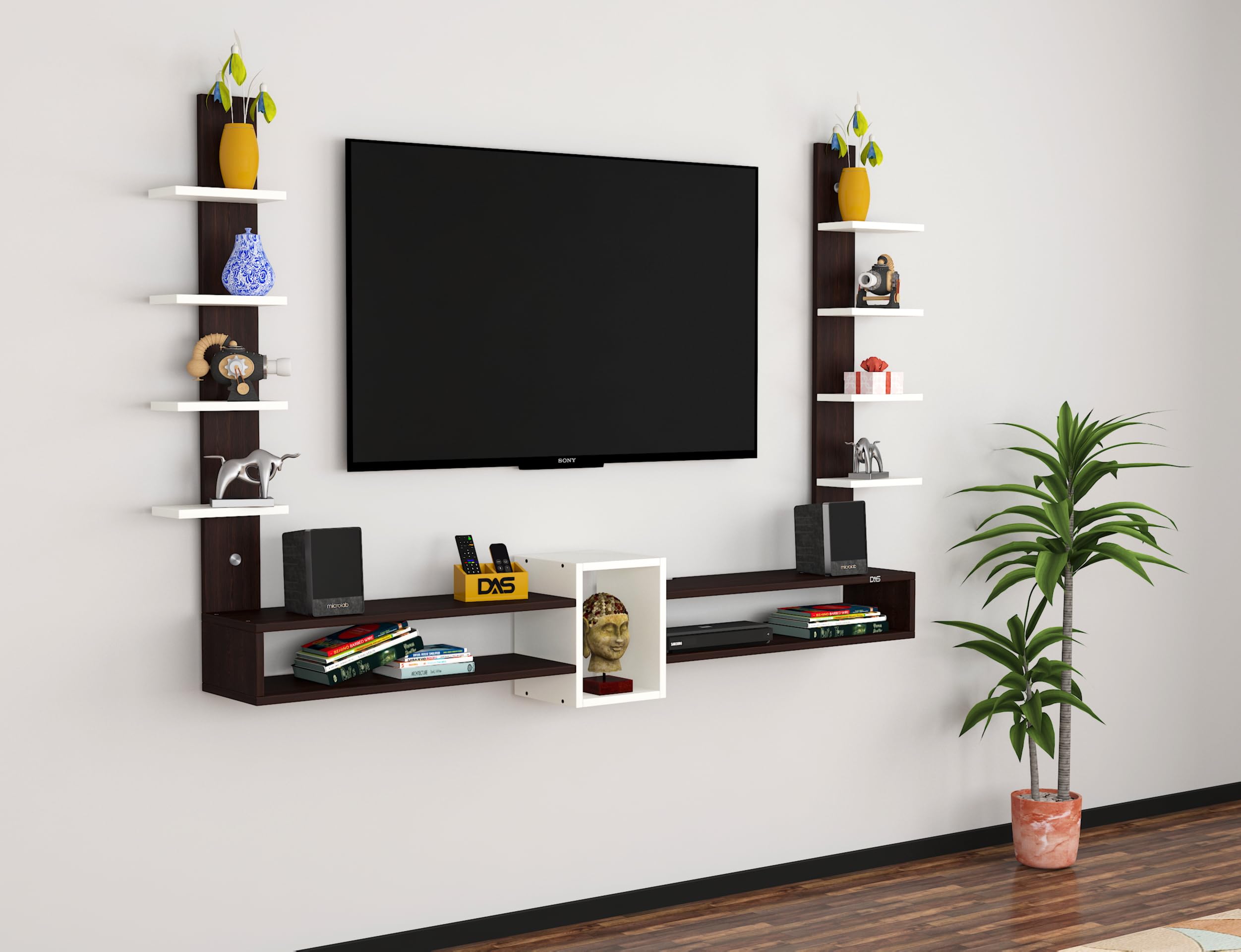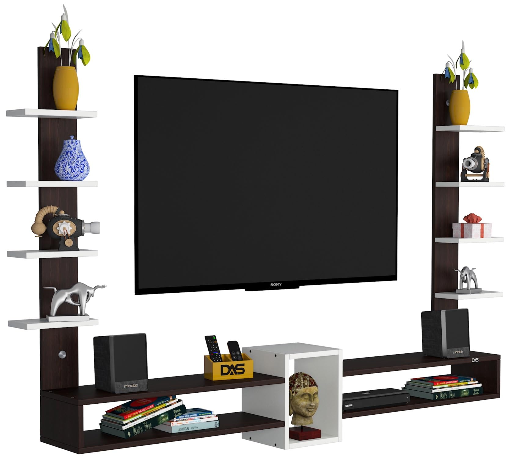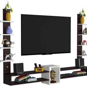 Rudolf Engineered Wood Wall Mount TV Entertainment Unit/Tv Rack Set to Box Stand with Wall Shelves for Living Room Flowery & Frosty White (Ideal for up to 65″) Screen