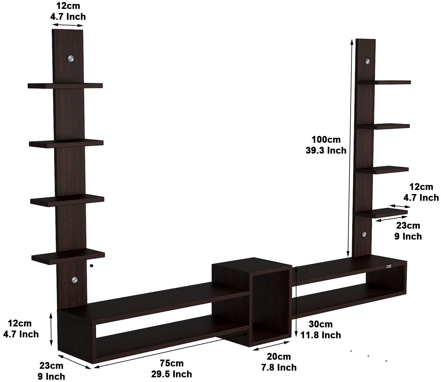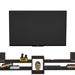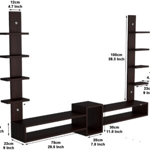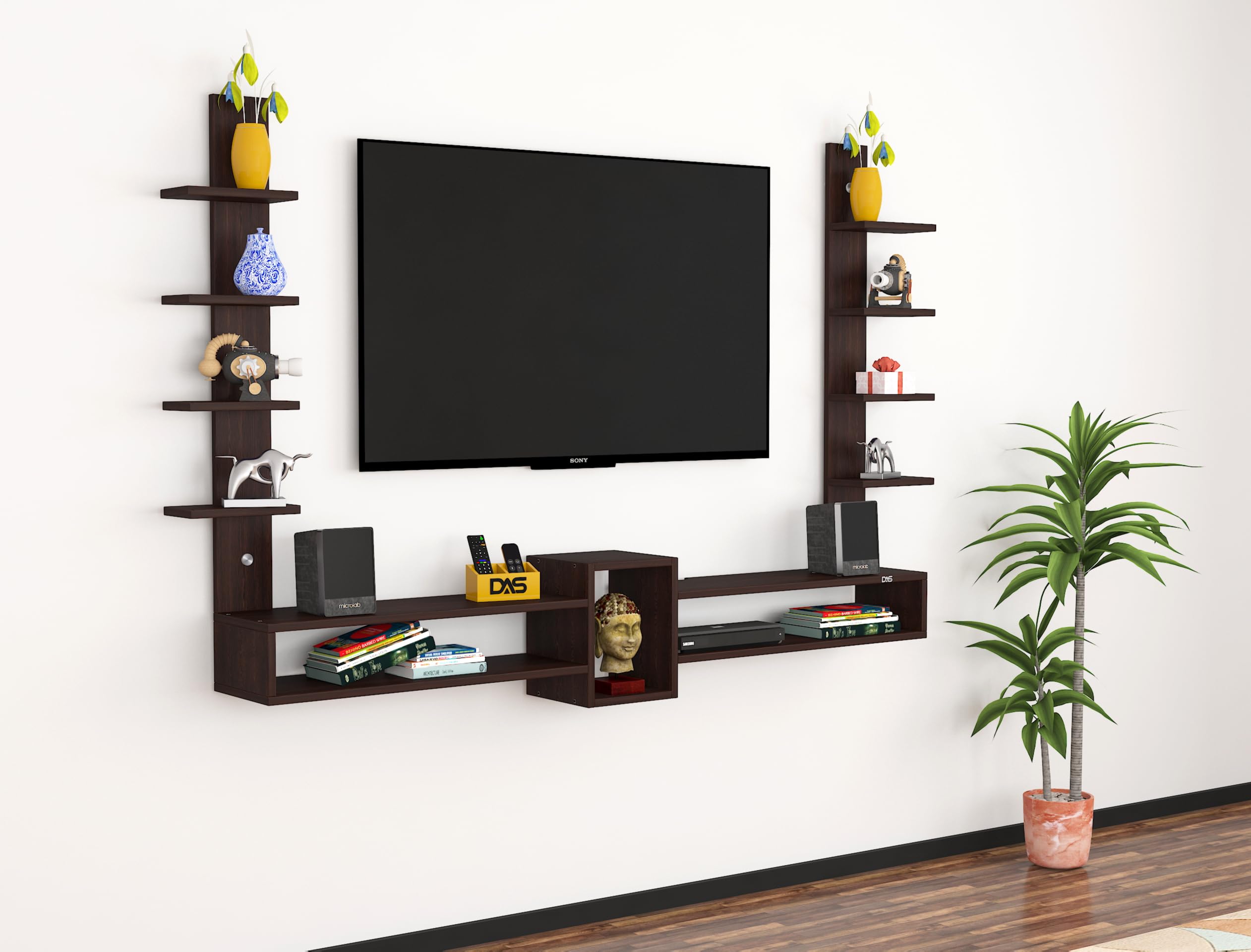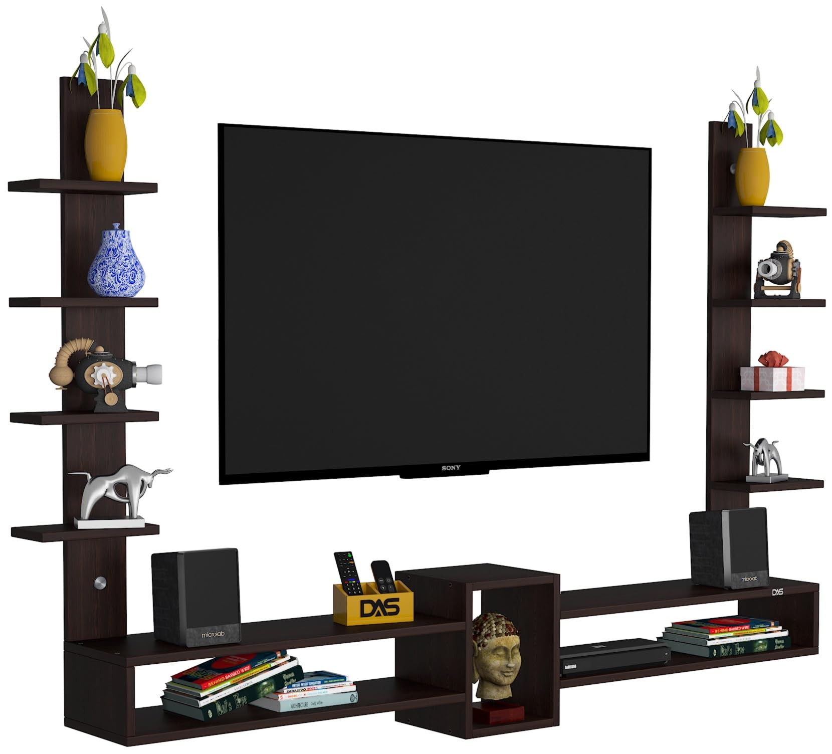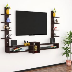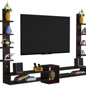 Rudolf Engineered Wood Wall Mount TV Entertainment Unit/Tv Rack Set to Box Stand with Wall Shelves for Living Room Flowery Wenge (Ideal for up to 65″) Screen
