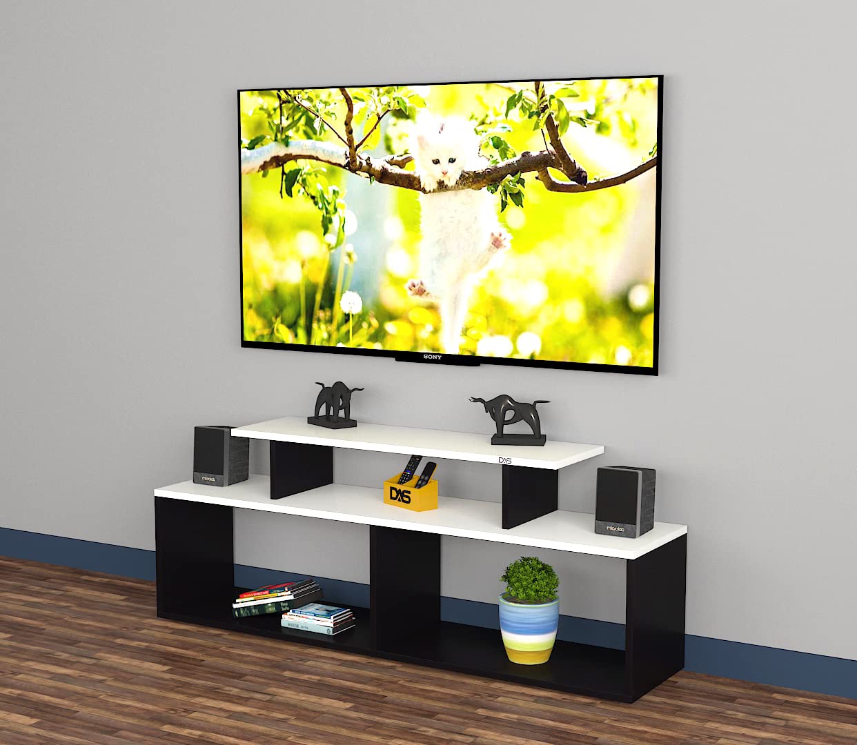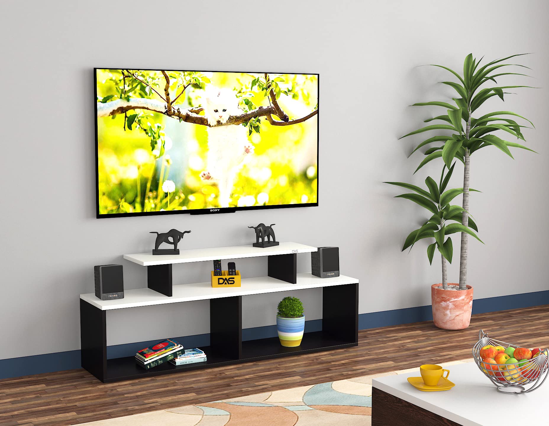 Vidal Engineered Wood Free Standing TV Unit Stand Black & Frosty White Finish- for Up to 55″ Screen