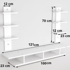 Material- Pre-laminated particle baord. Weight Capacity- 20 KG. Cable Management. Product Dimension- TV Cabinet- 121 x 23 x 70 CM cm Weight- 10.4 KG