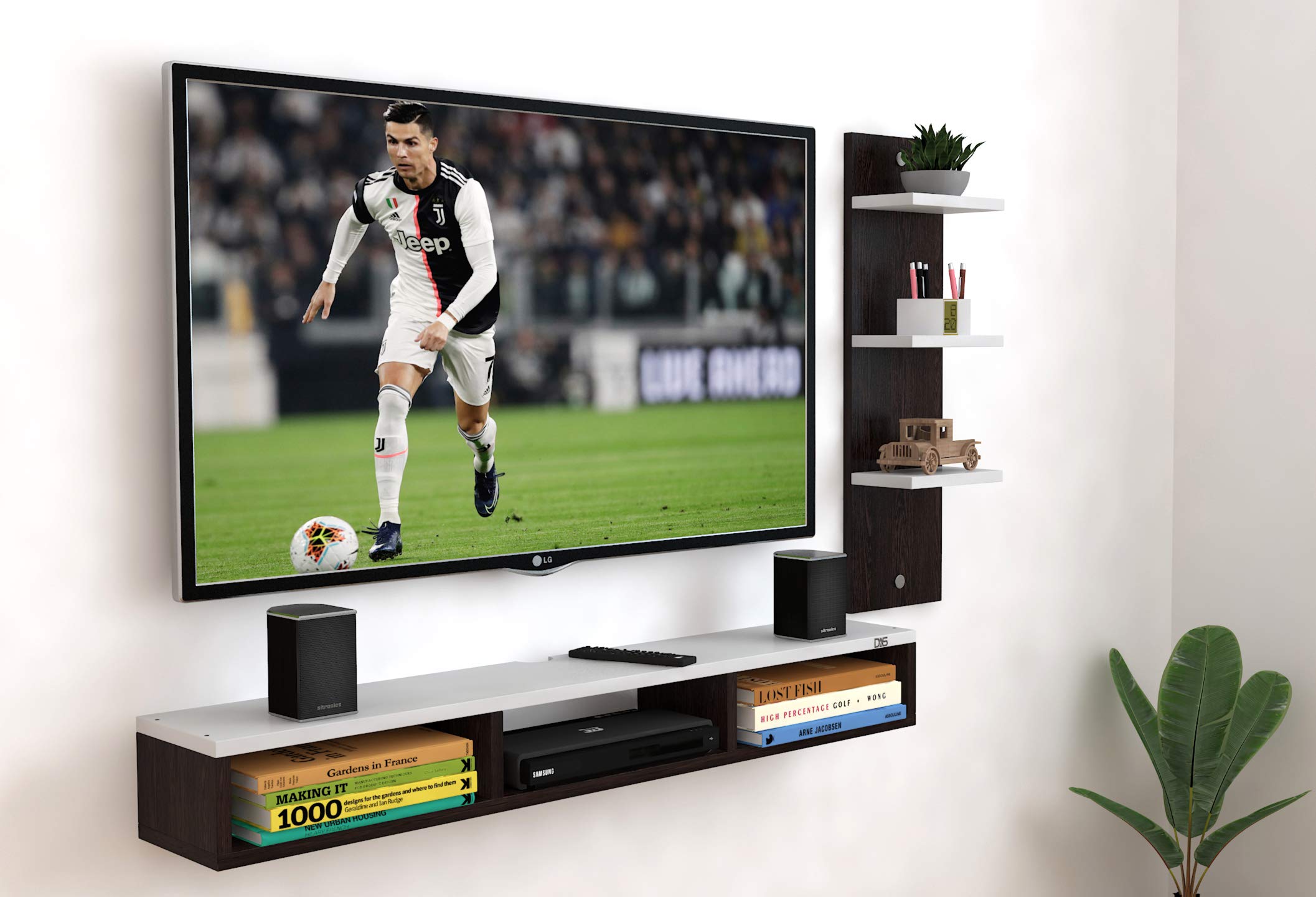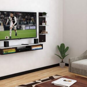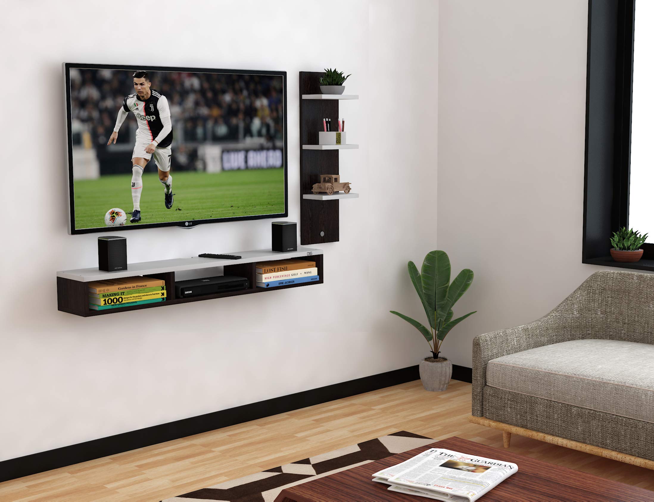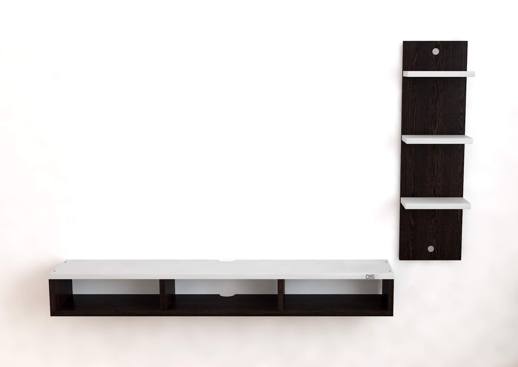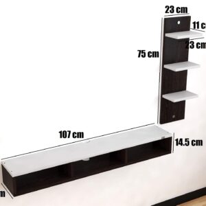 Wall Mount TV Entertainment Unit/with Set Top Box Stand and 3 Wall Shelves Display Rack Wenge & White (Ideal for up to 48″) Screen- Bolivar