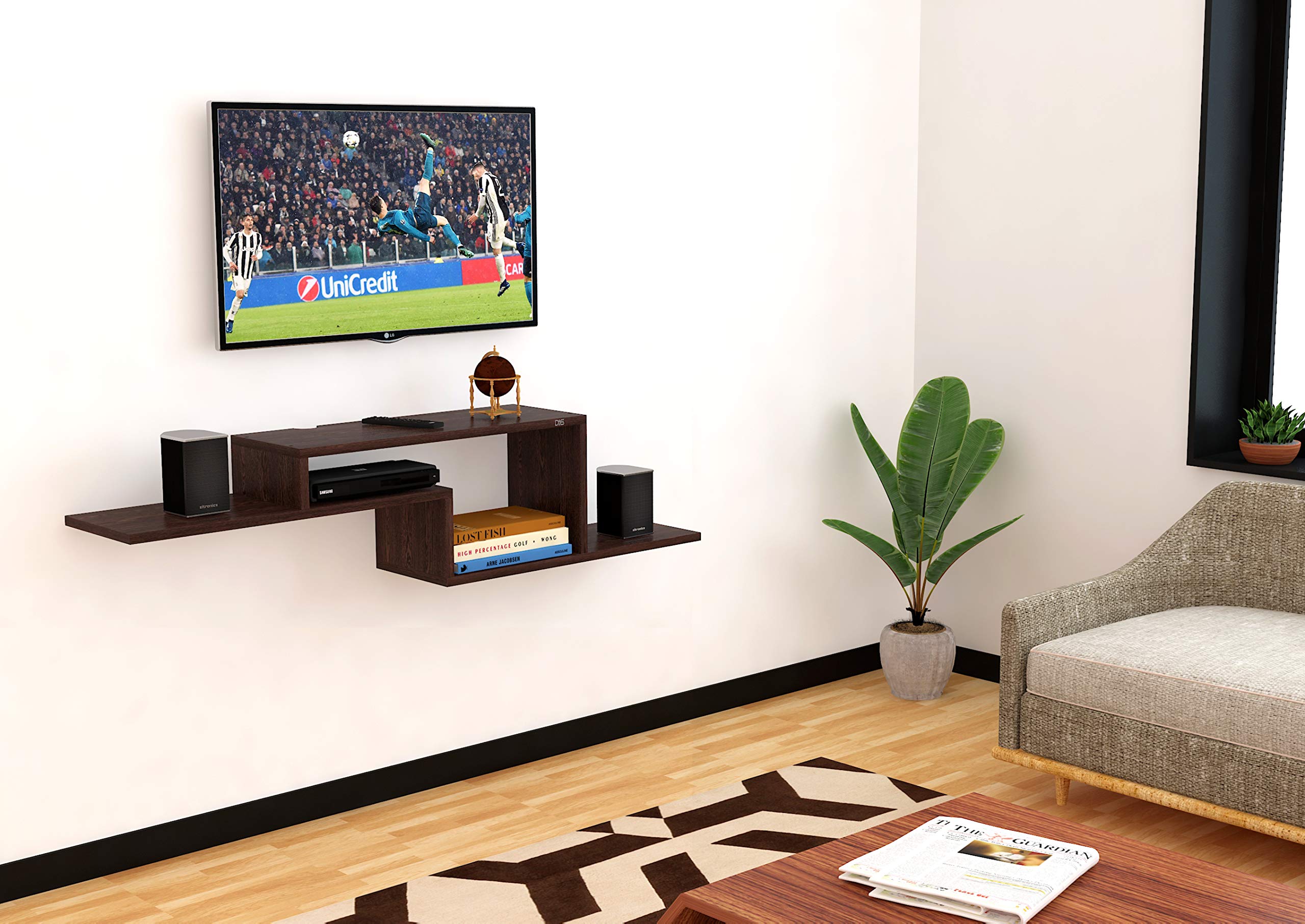 Wall Mount TV Entertainment Unit/with Set Top Box Stand for Living Room Wenge (Ideal for up to 42″) Screen- Alfric (Engineered Wood)