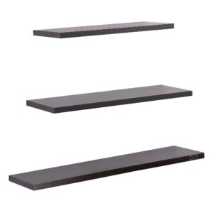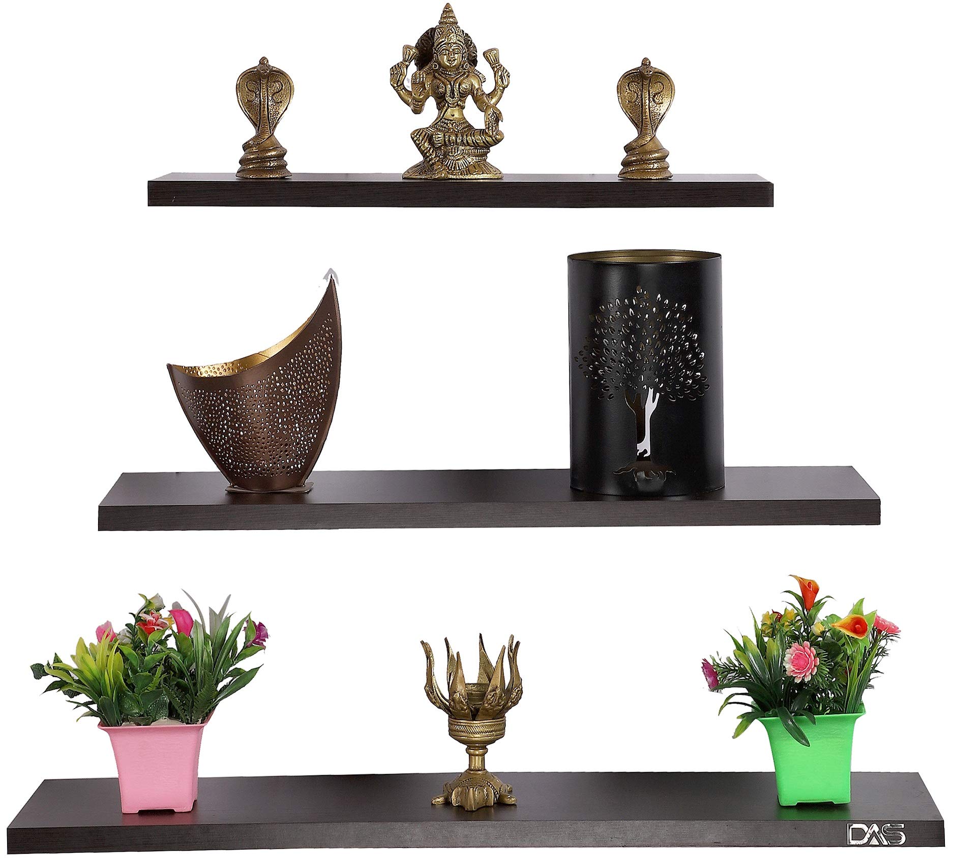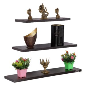 Increase storage space in any room without taking up valuable floor space using this eye-catching floating shelf set. Crafted from engineered wood, each piece strikes a clean-lined silhouette and boasts natural wood grain knots for a look that combines modern aesthetics with rustic accents. Plus, each features nail-head details for a touch of industrial appeal. Best of all, it arrives with installation hardware so it’s ready to go right out of the box. (Made In INDIA) Our Contribution to the nation in “Atmanirbhar Bharat” MISSION.