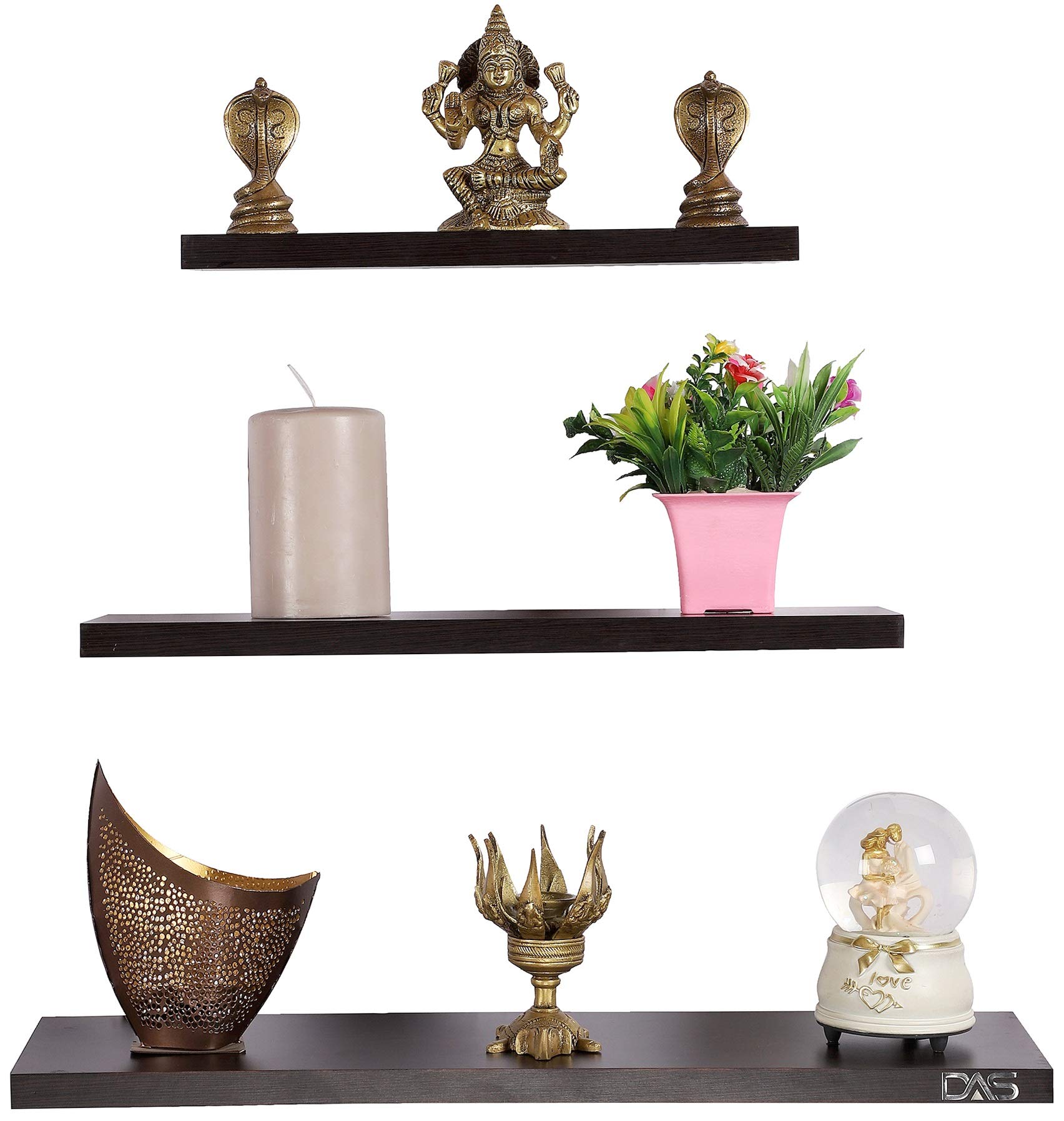 Wall Mounted Engineered Wood Wall Décor Shelf/Shelves Display Rack for Living Room (3 Shelves)- Kennet