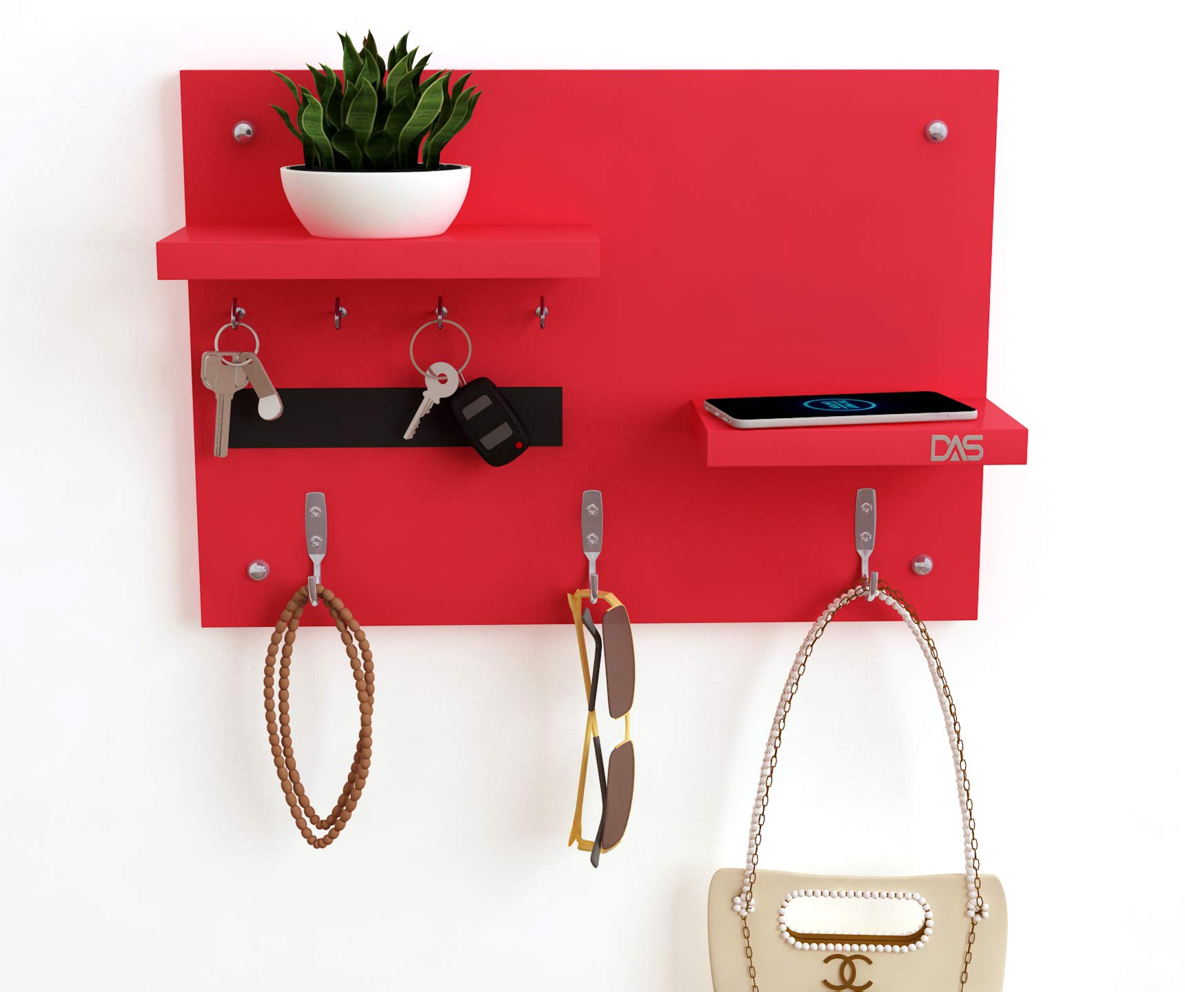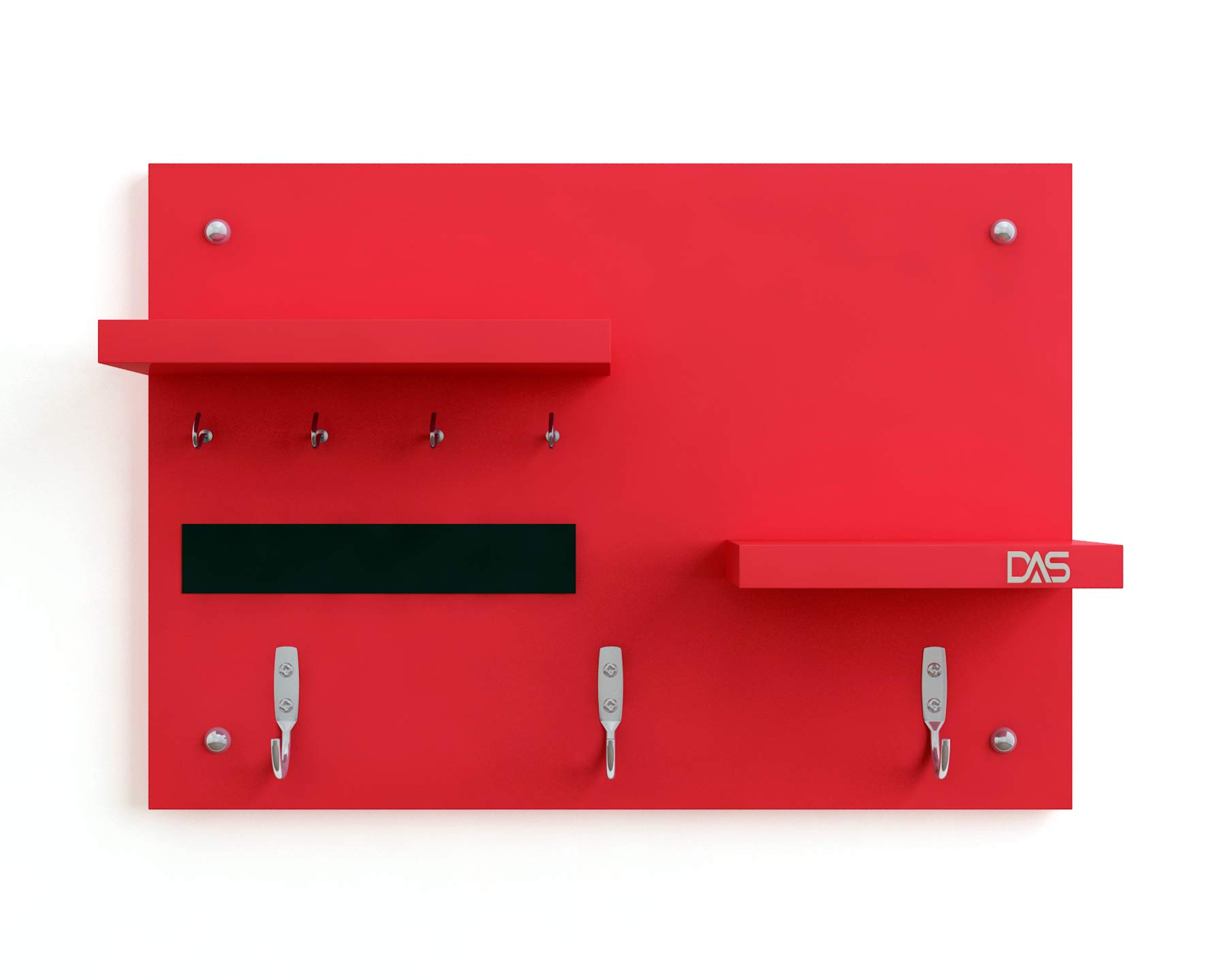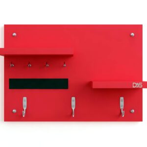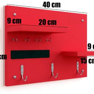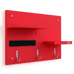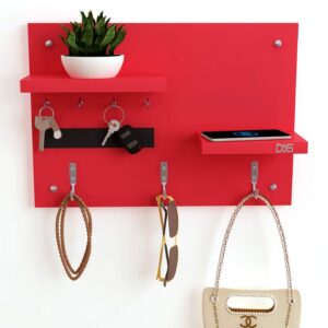 Wall Mounted Home Décor Key Chain Holder/Organizer Key Hooks with Double Wall Shelf Display Rack Red (7 Hooks)- Diana