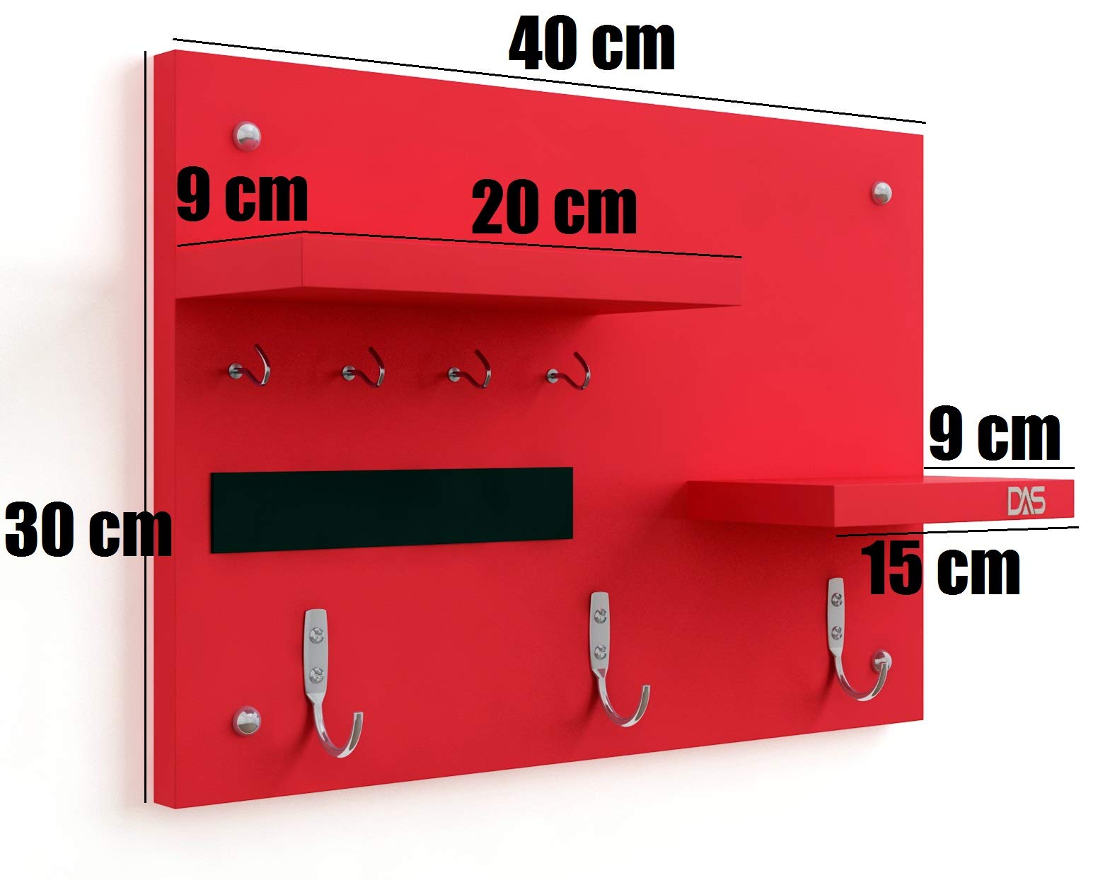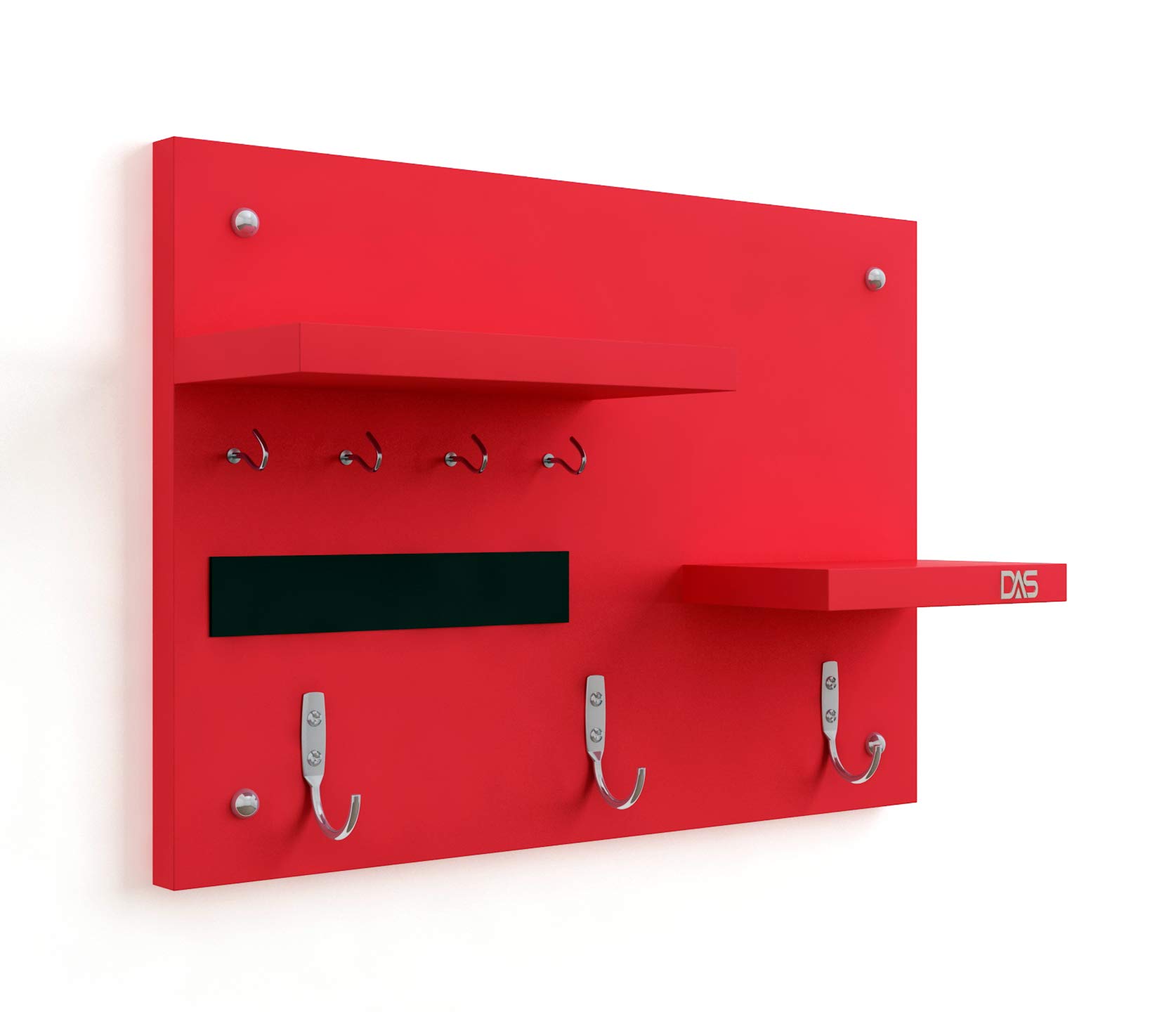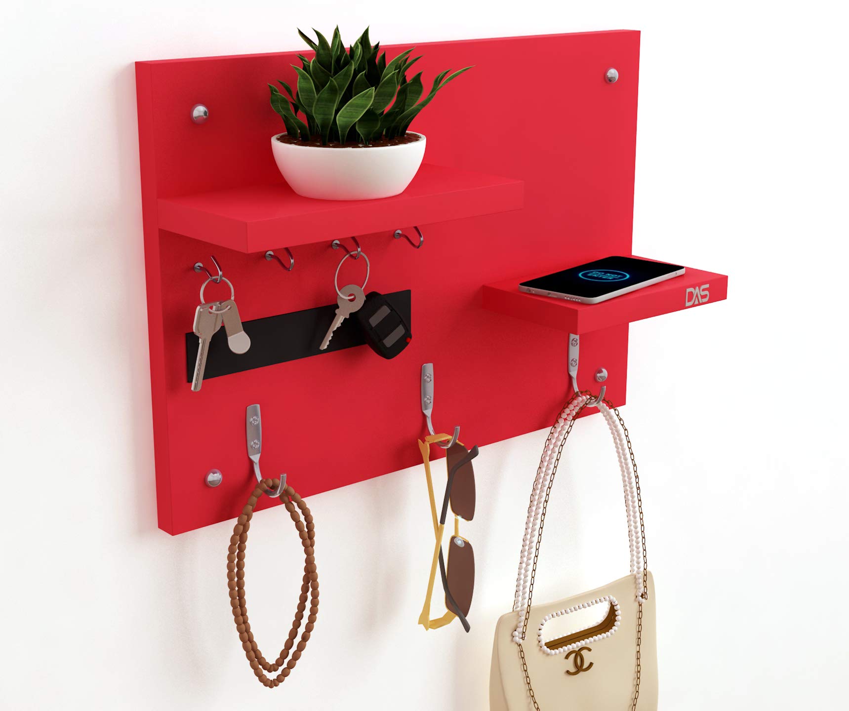Wall Mounted Home Décor Key Chain Holder/Organizer Key Hooks with Double Wall Shelf Display Rack Red (7 Hooks)- Diana