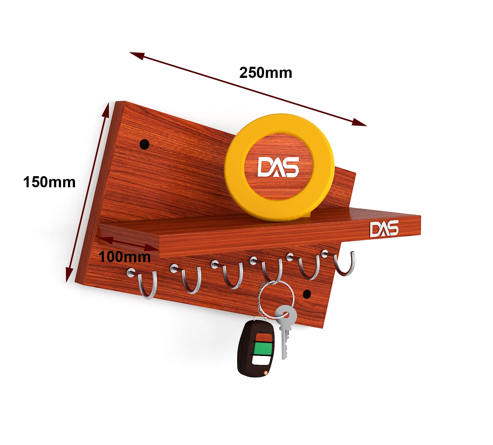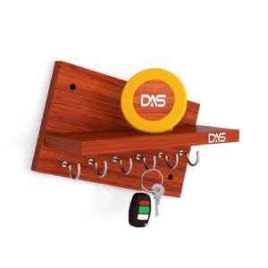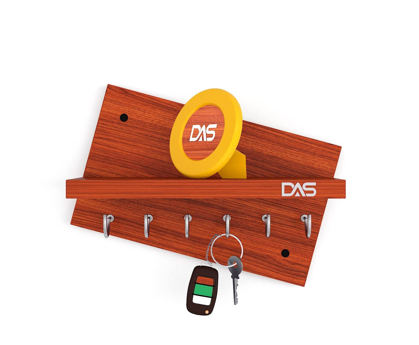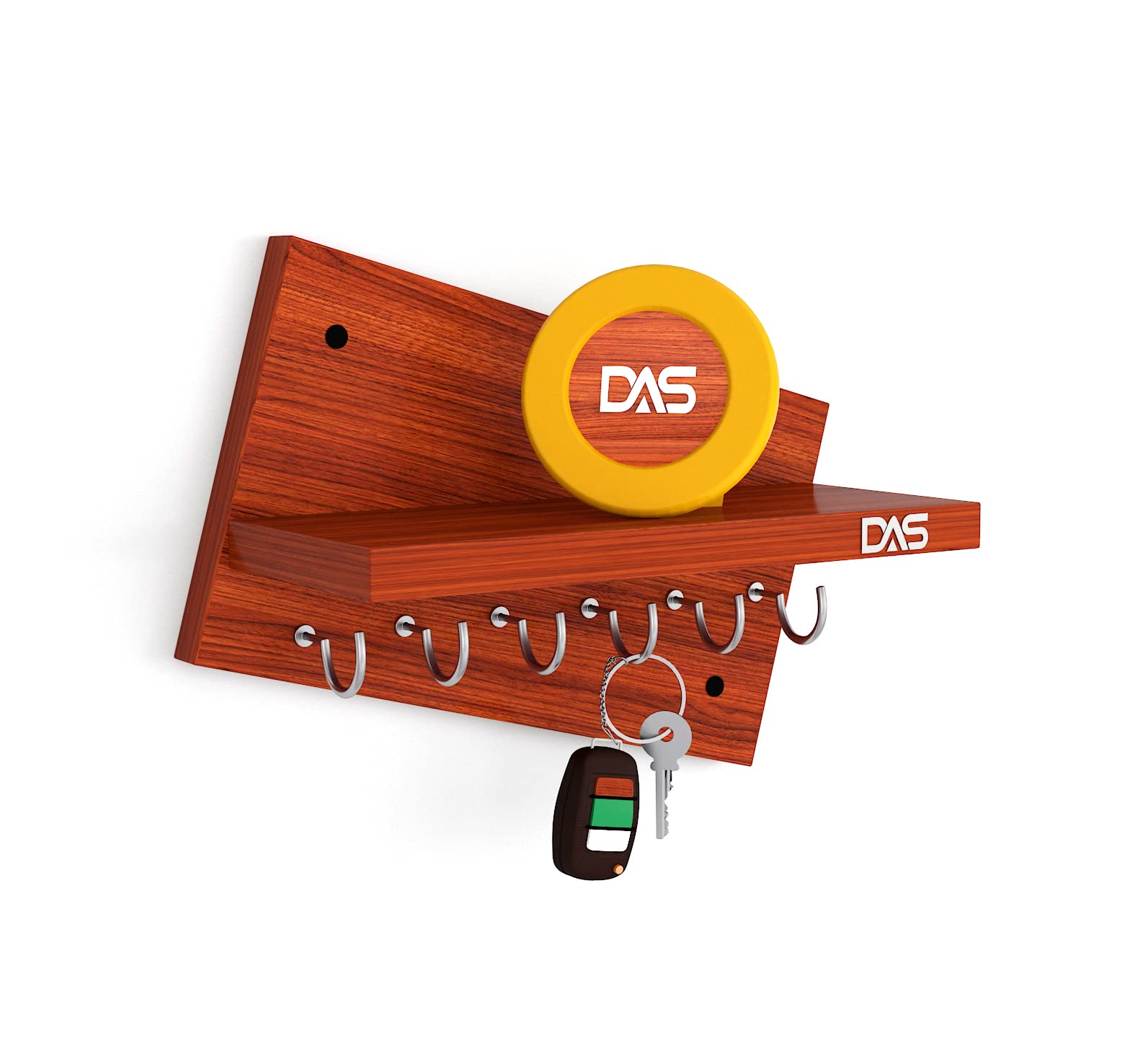 Wall Mounted Home Décor Key Chain Holder/Organizer Key Hooks with Wall Shelf Display Rack Classic Walnut (6 Knobs)- Mabel