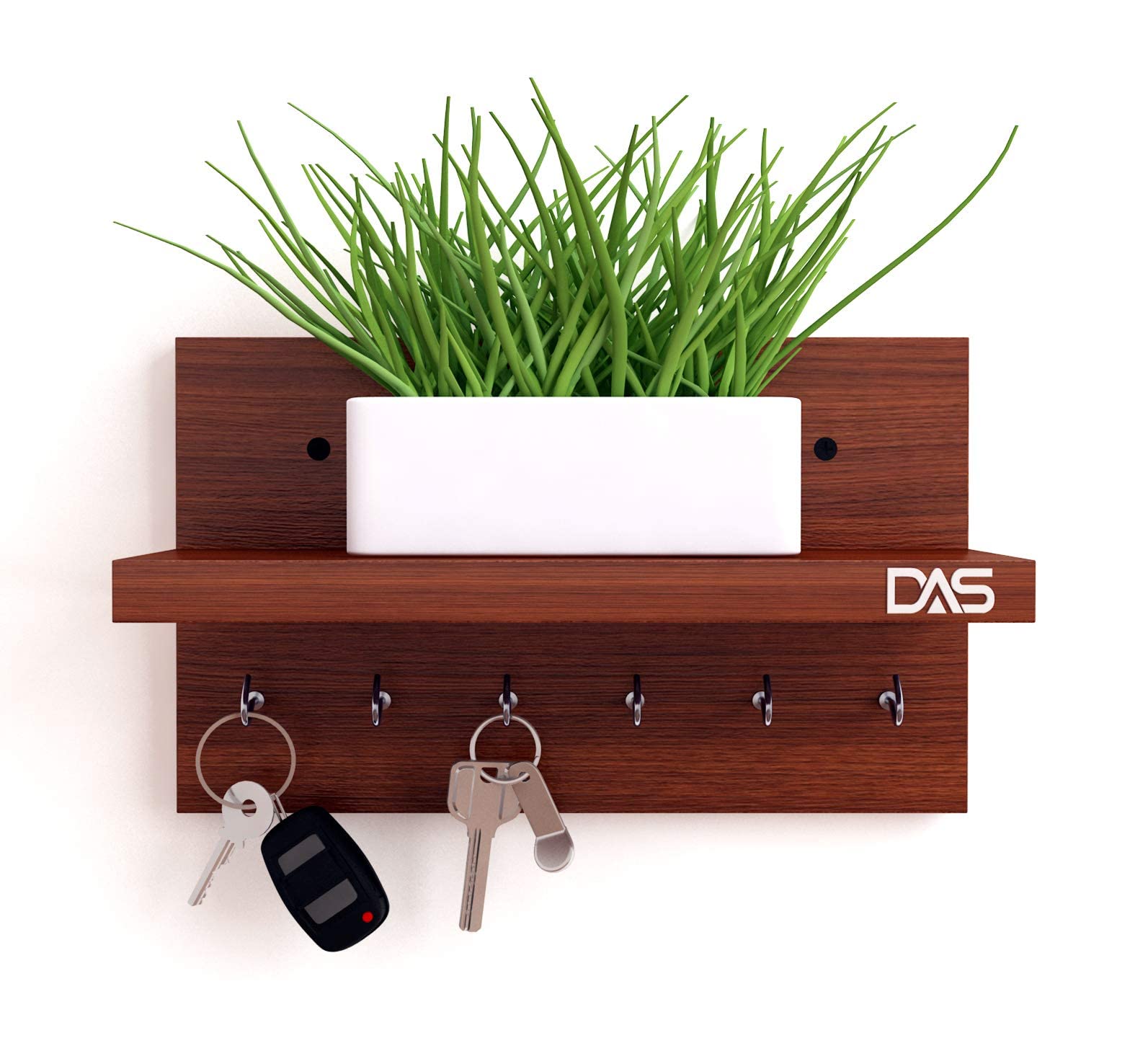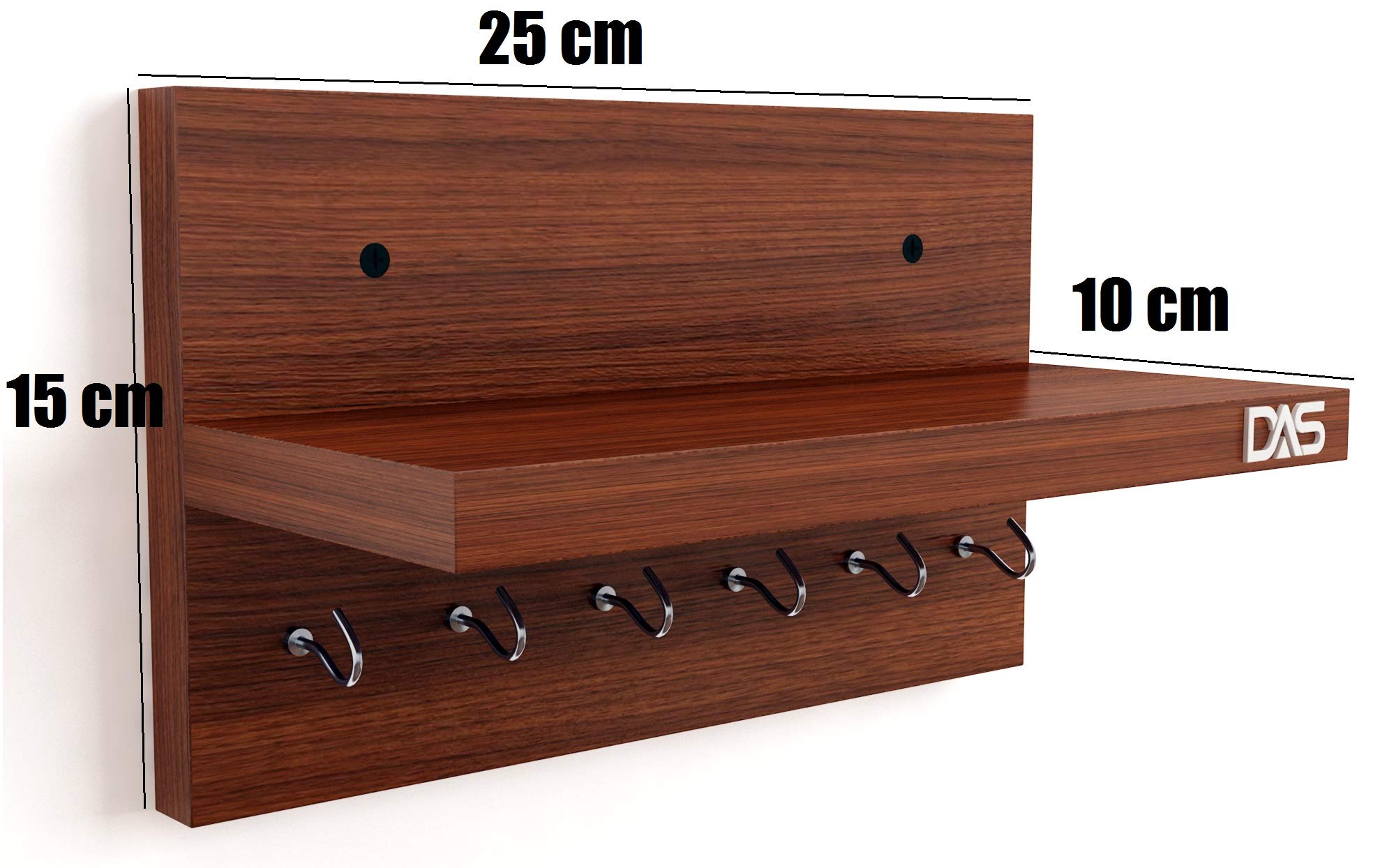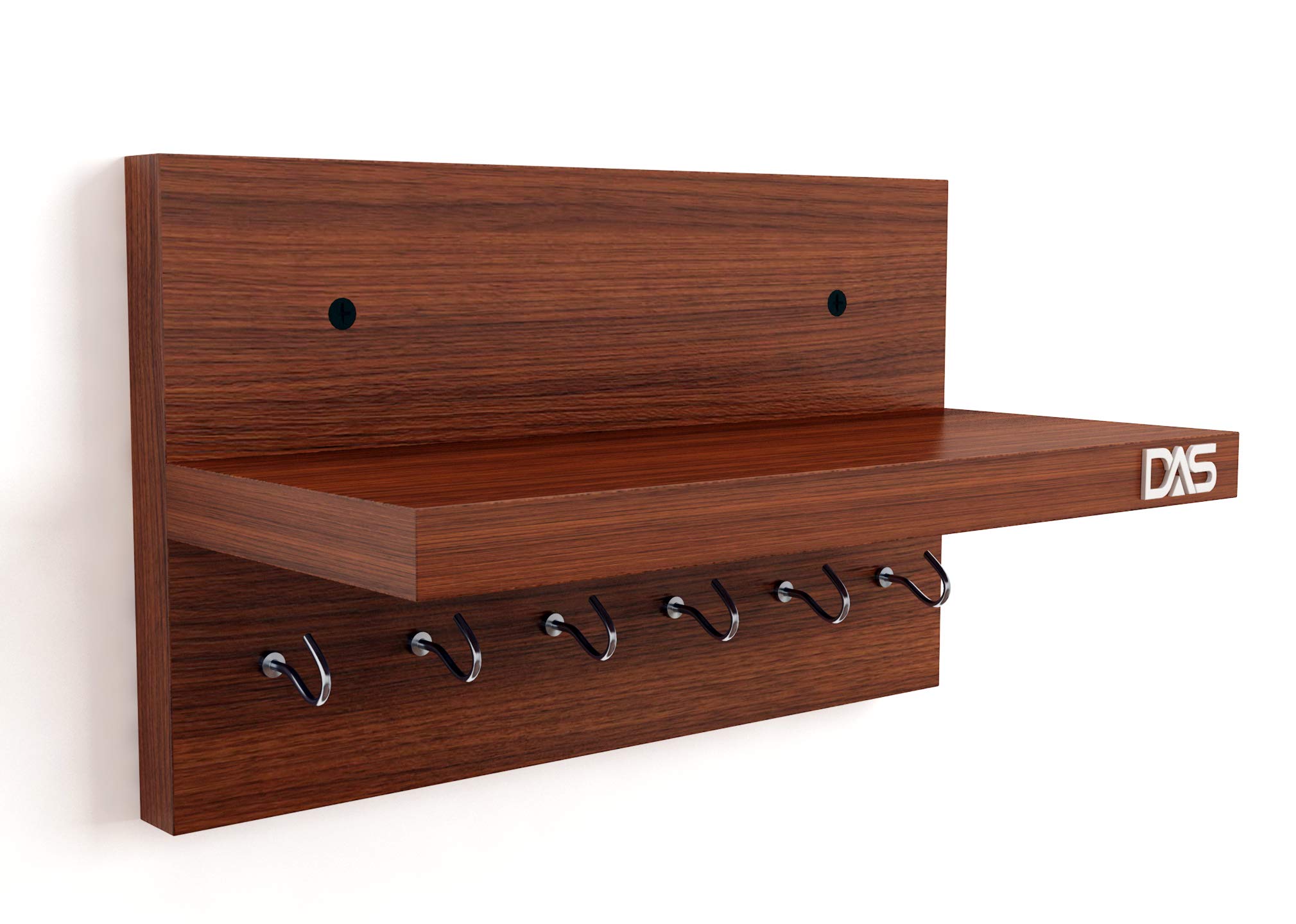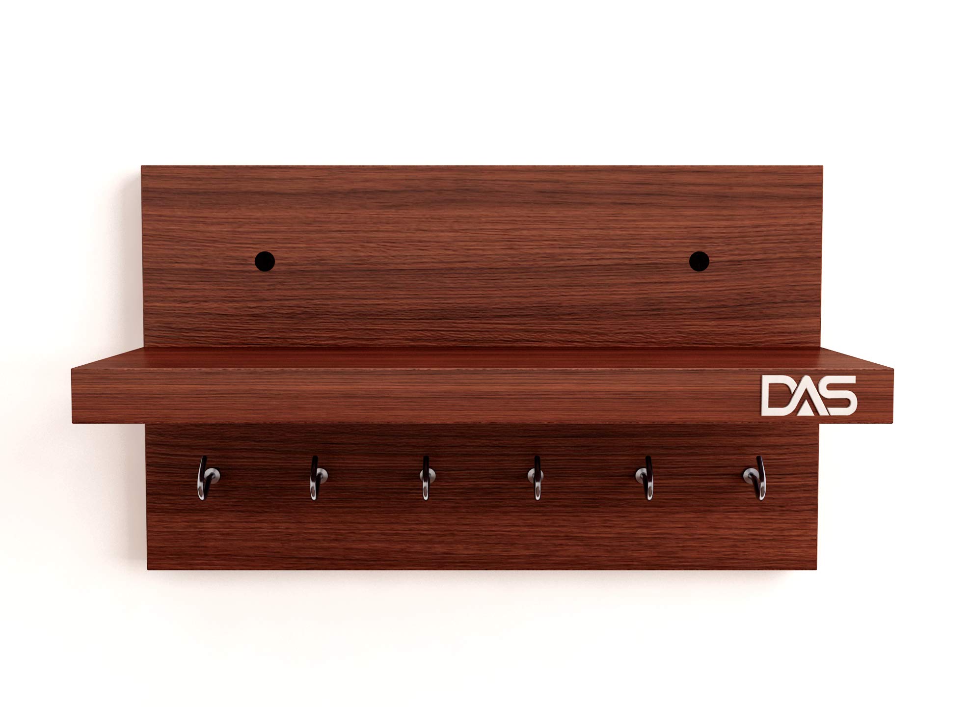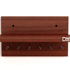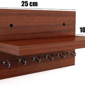 Wall Mounted Home Decor Key Chain Holder/Organizer with Wall Shelf Display Rack Ideal for Living Room and Office Walls (6 Hooks) Classic Walnut- Mabel