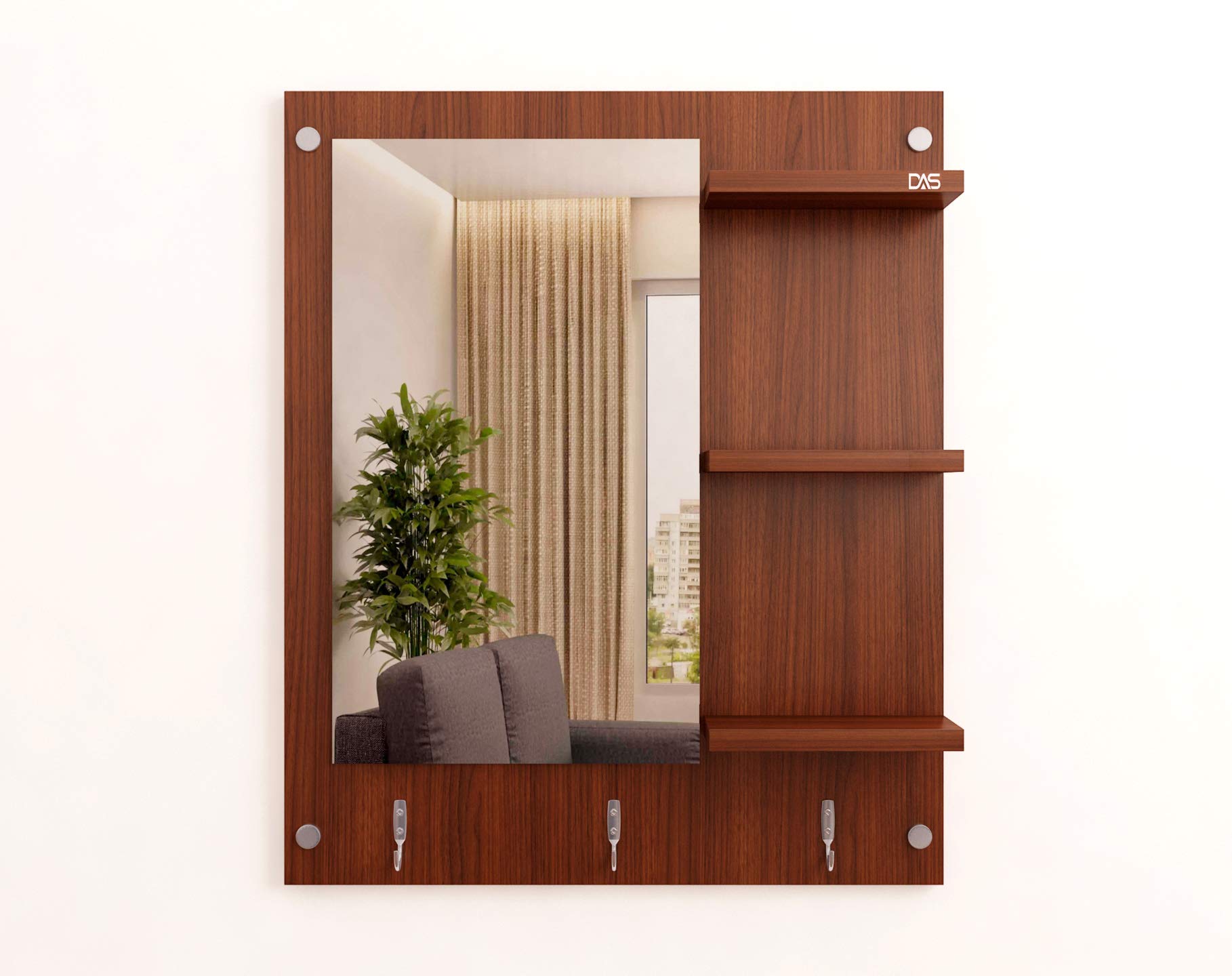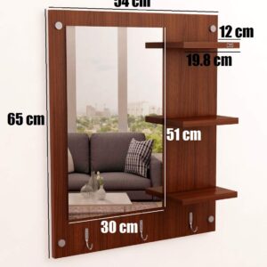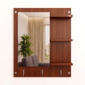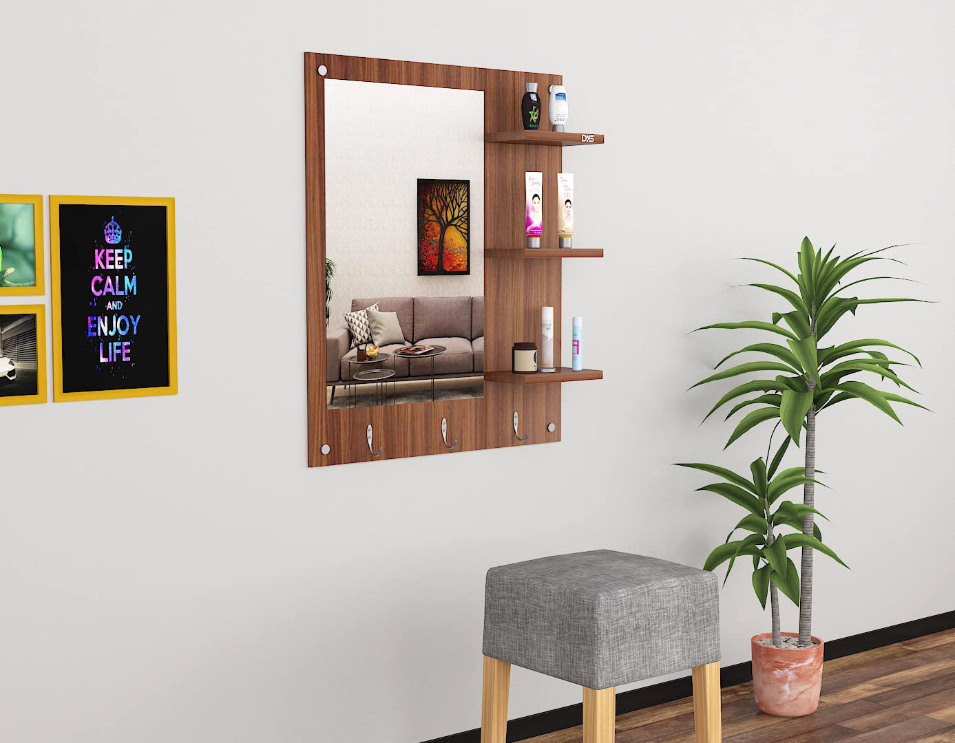 Wool & Wool Blend Wall Mount Makeup Vanity Dressing Mirror/Glass/Table and Multipurpose Rack Shelves with Elegant Double Stainless Steel Hooks (Classic Walnut)- Evelyn